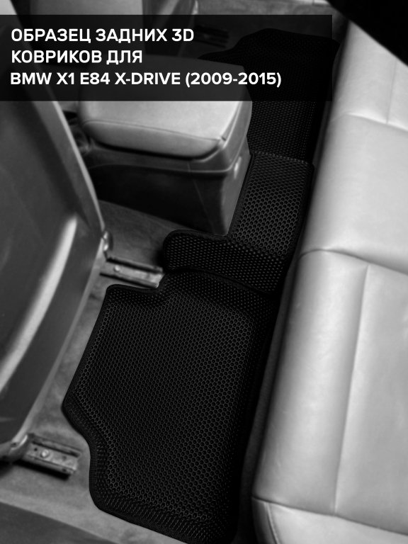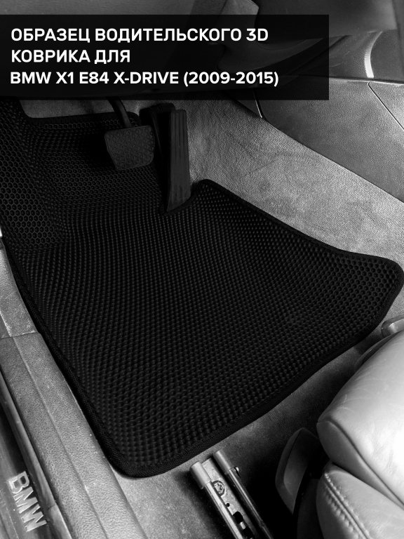 Автомобильные 3д коврики для BMW X1 E84 4WD (2009-2015) в салон авто и багажник сделаны из инновационного полимерного материала EVA, изысканная структура в виде ячеек не дает воде, пыли и снегу разлетаться по салону машины и багажнику. 3д коврики зафиксированы на полу определенными клипсами, соответствующими BMW X1 E84 4WD (2009-2015), и не двигаются в процессе езды.